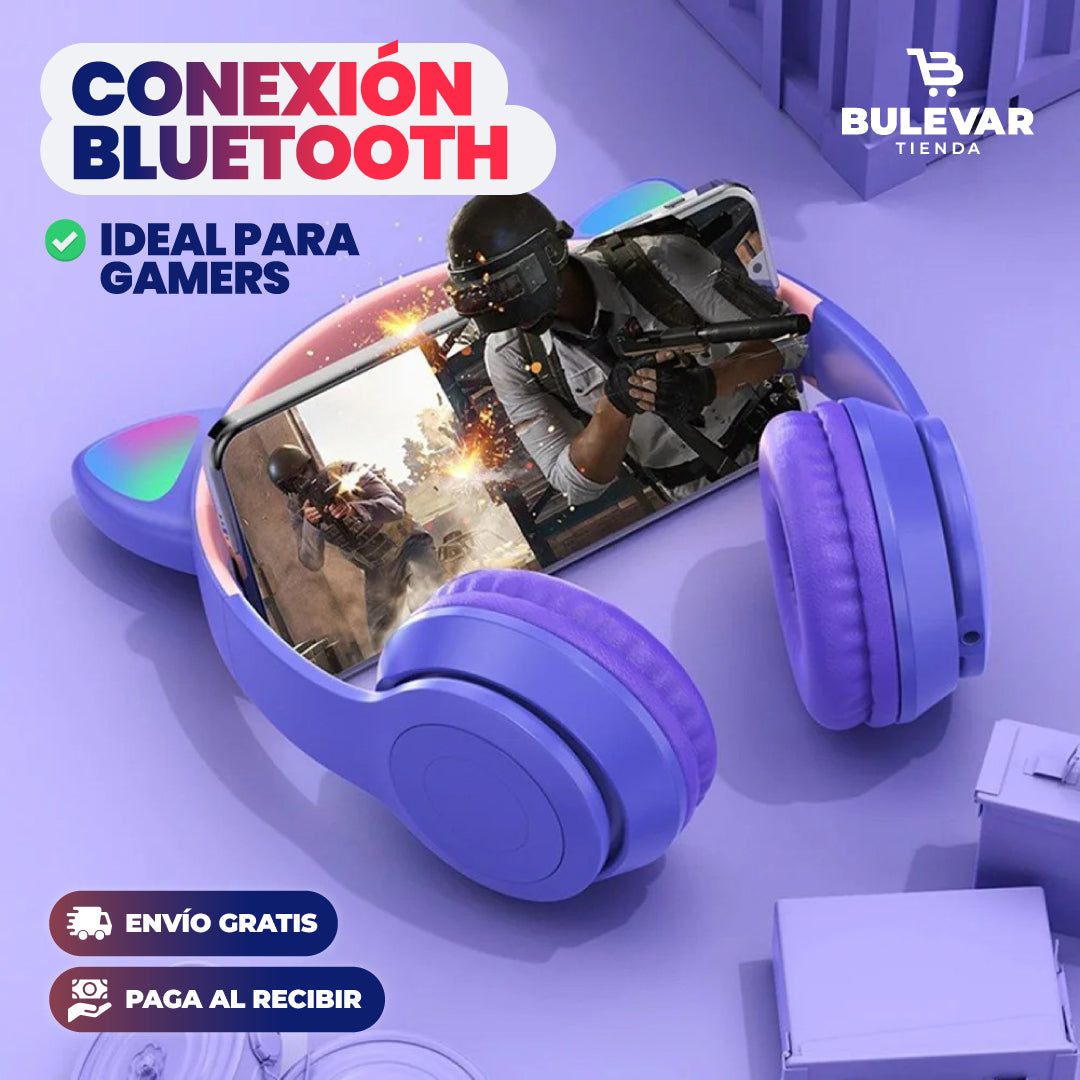 ¡Ilumina tu Música! Audífonos Inalámbricos con Orejas de Gato y Luces LED!
