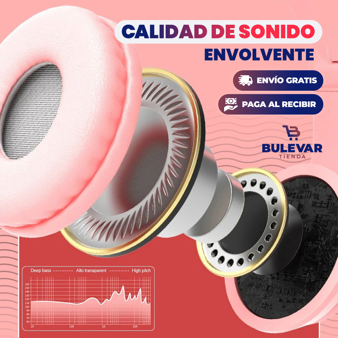 Los Audífonos Inalámbricos con Orejas de Gato ofrecen una combinación perfecta de estilo y rendimiento. Ideales para regalar, estos audífonos hacen que la música sea aún más emocionante para los más pequeños y los jóvenes de corazón.