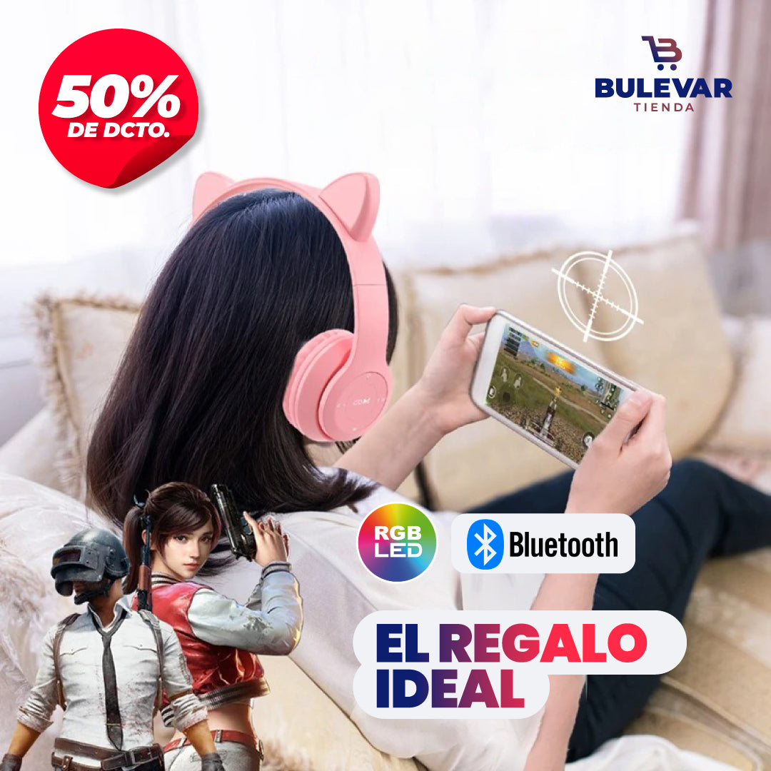 AUDÍFONOS INALÁMBRICOS OREJAS DE GATO CON LUCES RGB