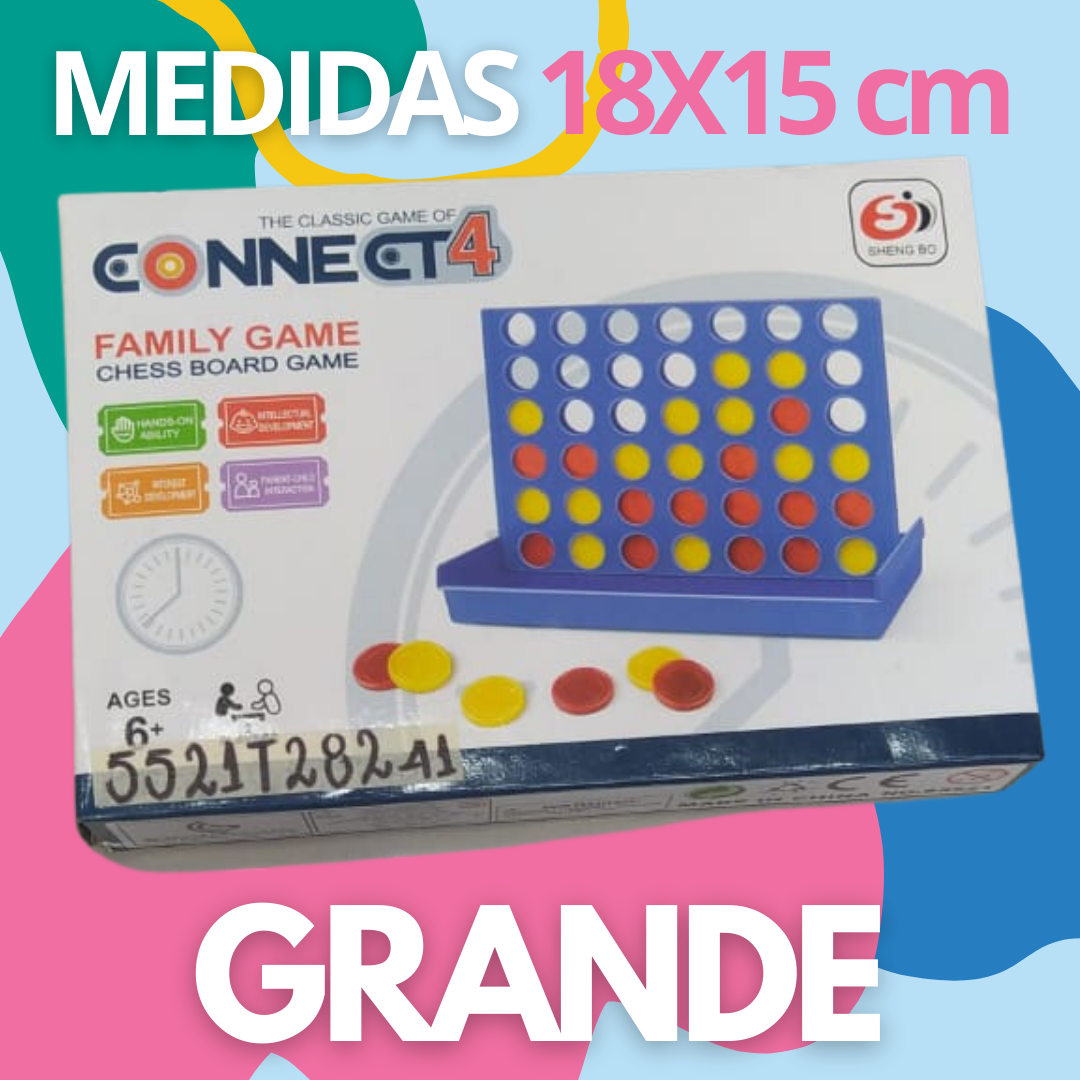 Este es un clásico juego de 2 jugadores que invita a competir con ingenio, atención y lógica. Ayuda a desarrollar tanto la inteligencia como la sociabilidad, Hay que alinear las fichas del mismo color dentro de la parrilla, En horizontal, en vertical o en diagonal, ¡Si el contrincante no lo impide!