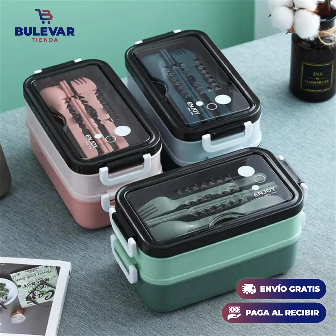 Con la lonchera doble, puedes llevar tus comidas de manera organizada y mantener su frescura durante todo el día. Ya sea que estés en la escuela, en la oficina o de viaje, esta lonchera es la compañera perfecta para tus necesidades de alimentación diarias.