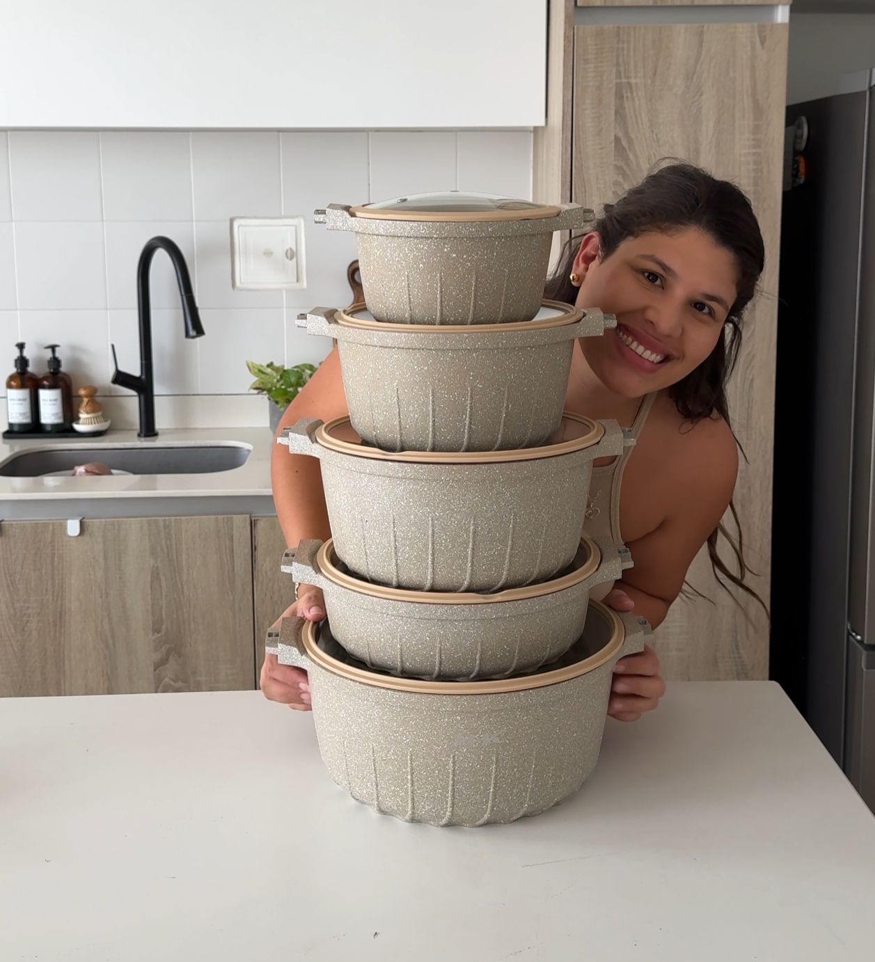 - Capa base de cubierta térmica, inducción, calienta mas rápido y retiene el calor durante mas tiempo.