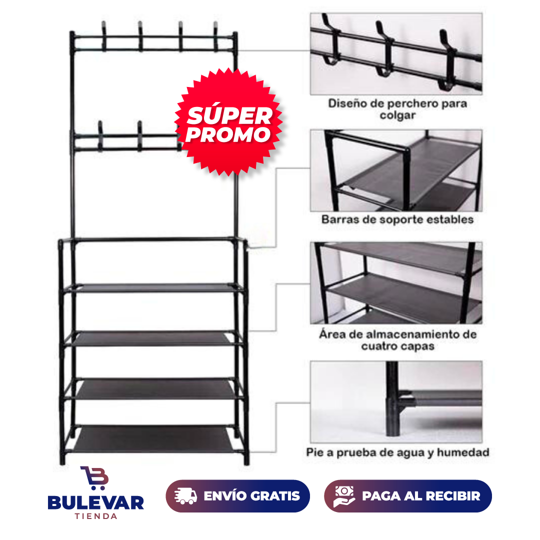 ORGANIZADOR DE ZAPATOS 4 NIVELES Y PERCHERO